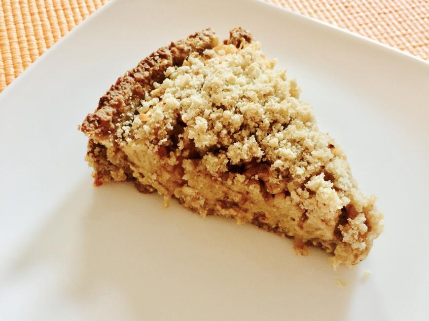 1. Postupně si připravte všechny 4 části koláče. V mixéru umixujte ovesné vločky s vlašskými ořechy a poté je přendejte do mísy. Přidejte jahelnou mouku, med a/nebo sirup, kokosový olej a na závěr přilijte sójové mléko. Promíchejte do kompaktní hmoty a nechte pár minut uležet.